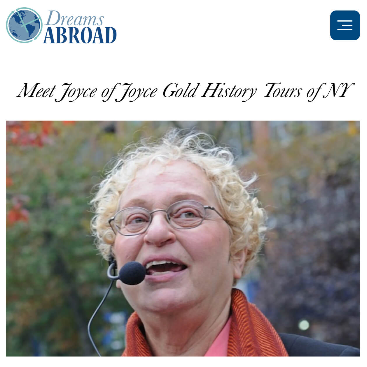 Joyce is a recognized expert and historical raconteur and walking tour guide who delights visitors and New Yorkers alike with an experience both insightful and entertaining.